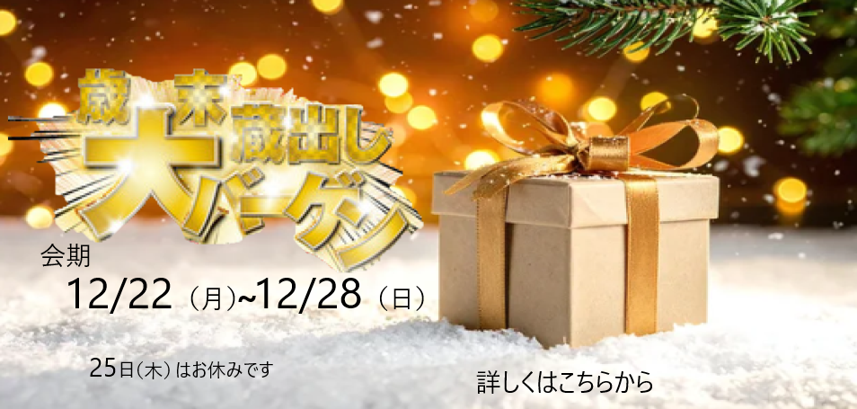 中込店にて「歳末蔵出し大バーゲン」を開催いたします 12/22~12/28 25日はお休みです。