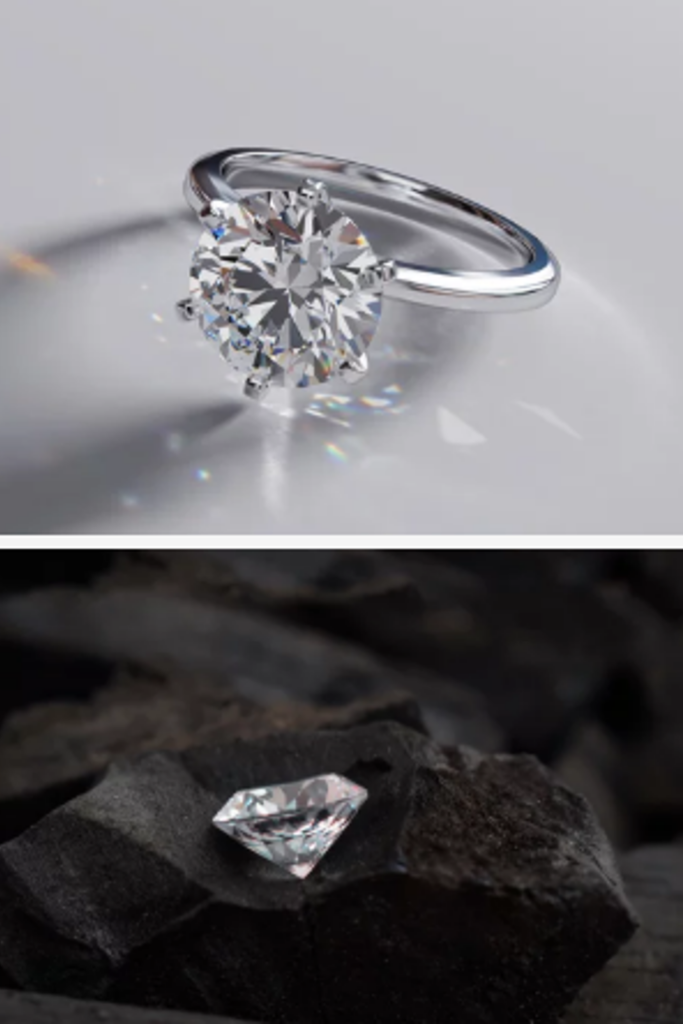 どちらも同じ炭素からできた本物のダイヤモンドです。