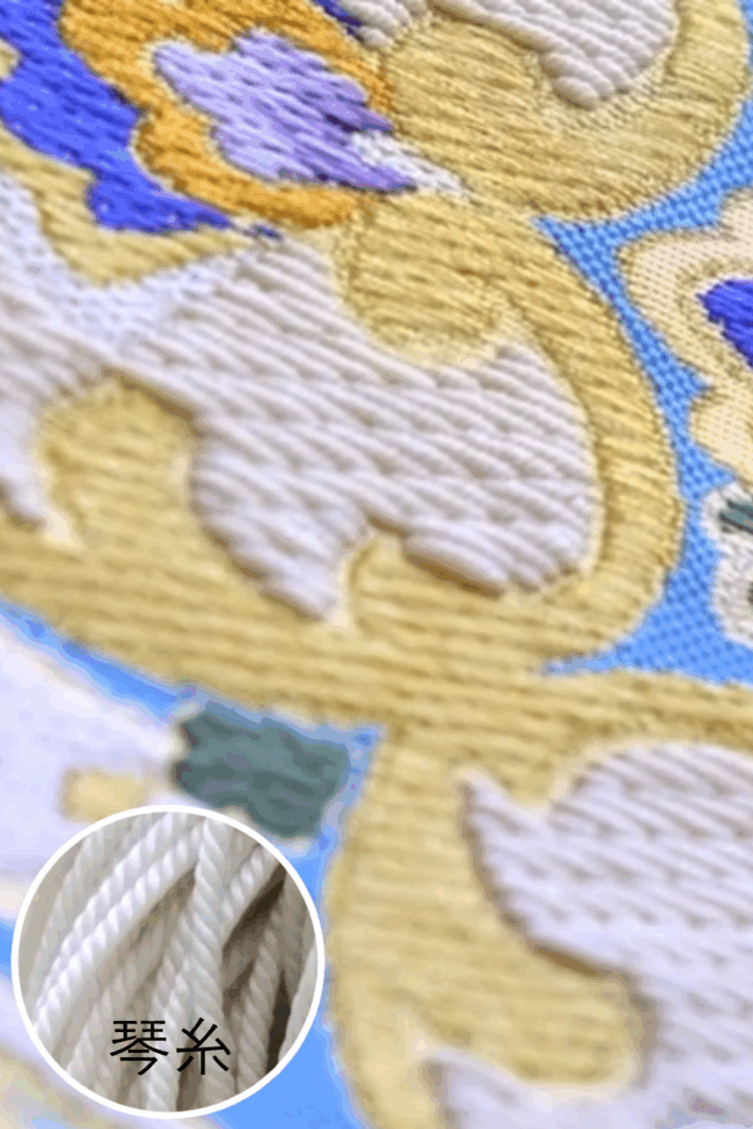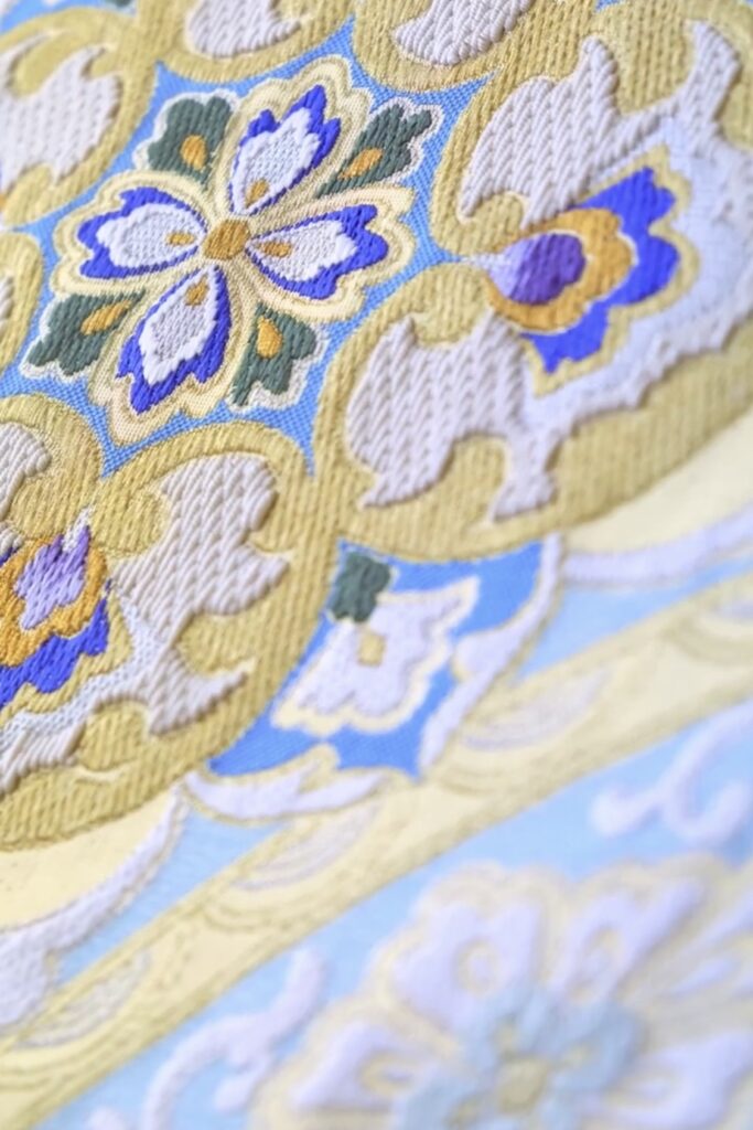 また、西陣織は豊かな色彩と緻密な文様を特徴とし、金襴・つづれ・唐織など多彩な技法によって、華麗さと気品を兼ね備えた意匠を生み出します。その優雅な美しさは、フォーマルな装いに格別の格調を添えてくれます。