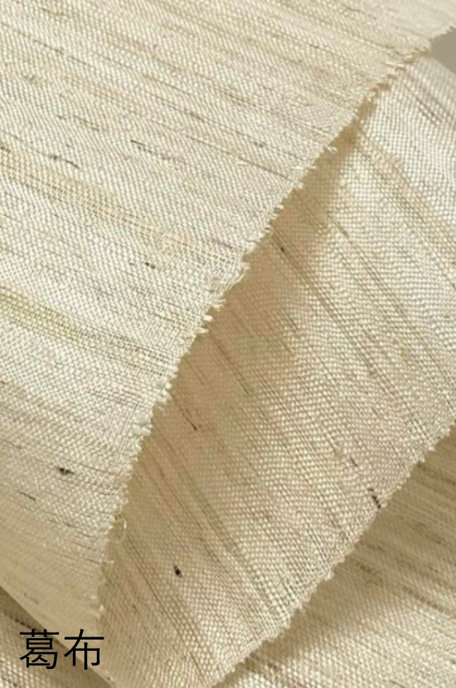 葛布(くずふ)は、身近に自生する葛の蔓から採取した繊維を用い、一本一本を丹念に糸へと紡ぎ、織り上げられる日本古来の自然布です。