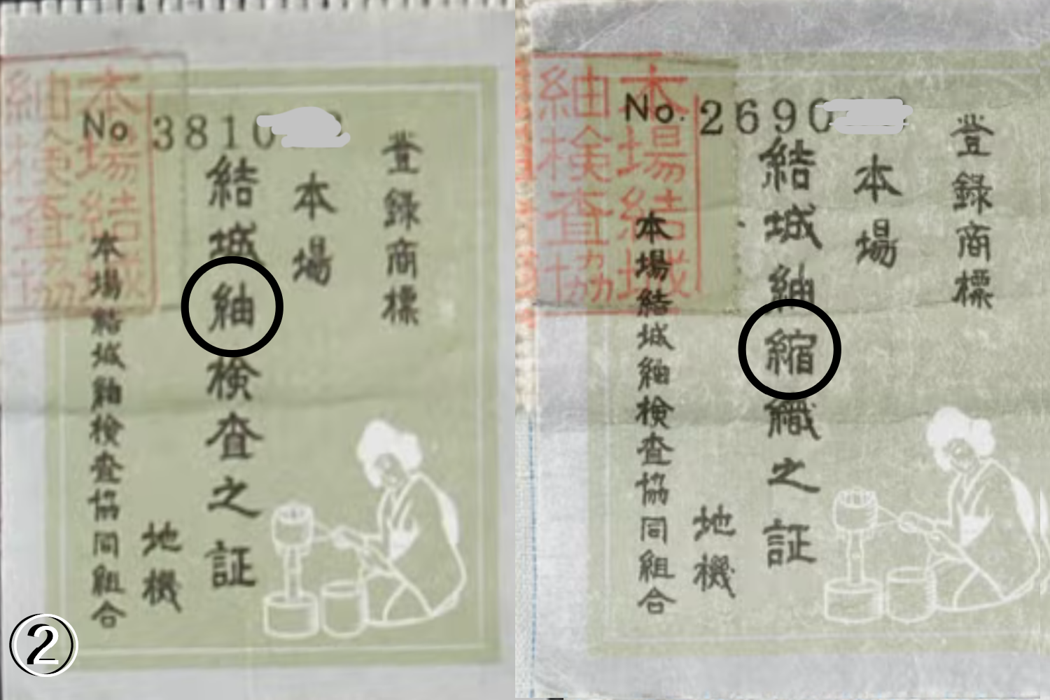 結城紬は撚りをかけない手つむぎ糸を用いるのに対し、結城縮は撚りをかけた糸を用いて織り上げます。