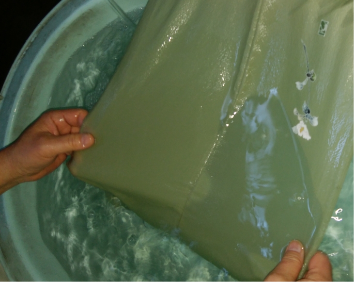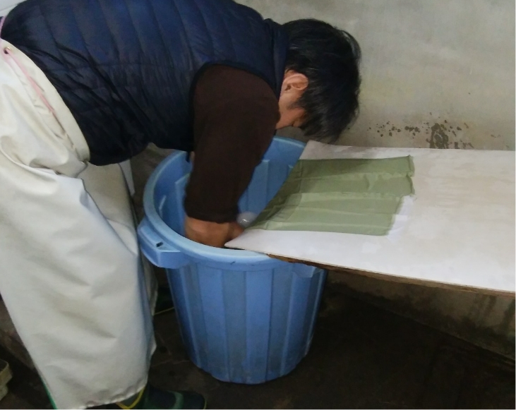 着物を解いて反物の状態に戻し、水洗いして汚れを落とします。